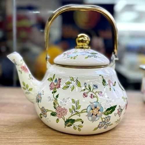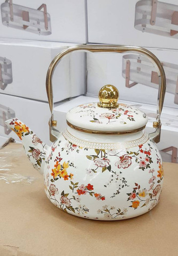 کتری گلدار دسته طلایی