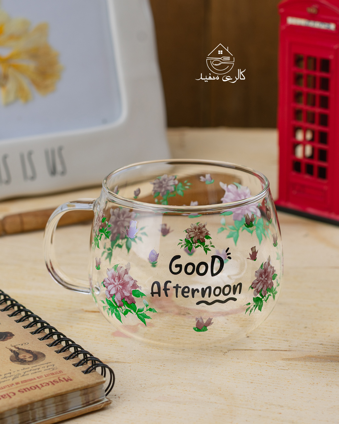 ماگ پیرکس گلدار تکست گودافترنون پیرکس شعله مستقیم تک جعبه وارداتی ساخت چین حجم ۴۰۰ میل مناسب نوشیدنی های سرد و داغ