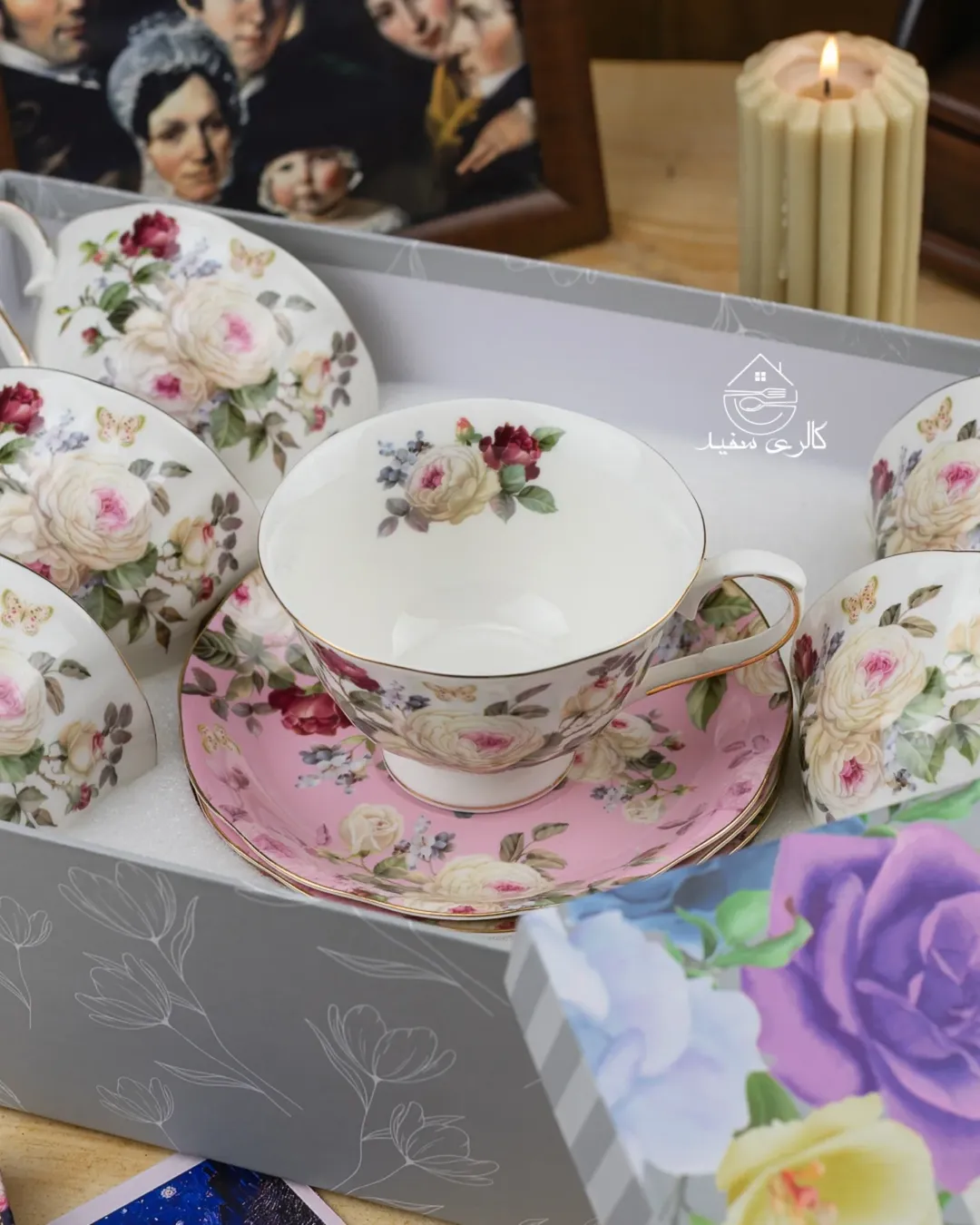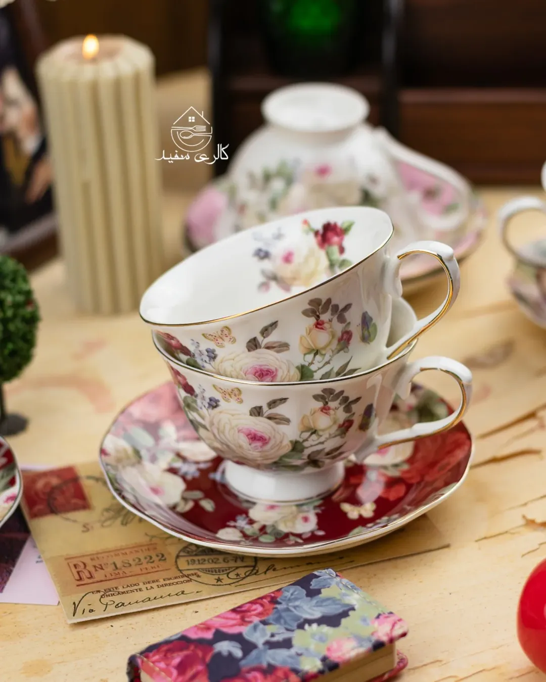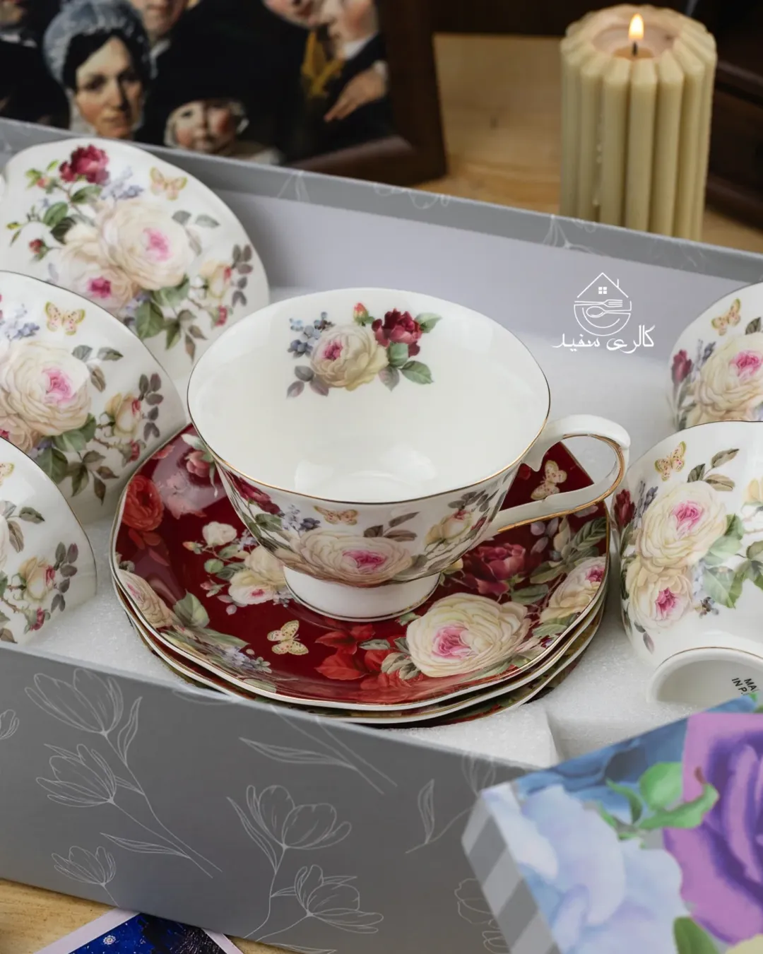 فنجان نعلبکی گلدار انگلیسی لبه و دسته طلایی جنس چینی مناسب چای و لته وارداتی ساخت چین کیفیت بسیار عالی دارای جعبه کادویی ست ۶عددی فروش به صورت تک و ست ۶عددی توجه: قیمت برای هر عدد فنجان و نعلبکی می باشد