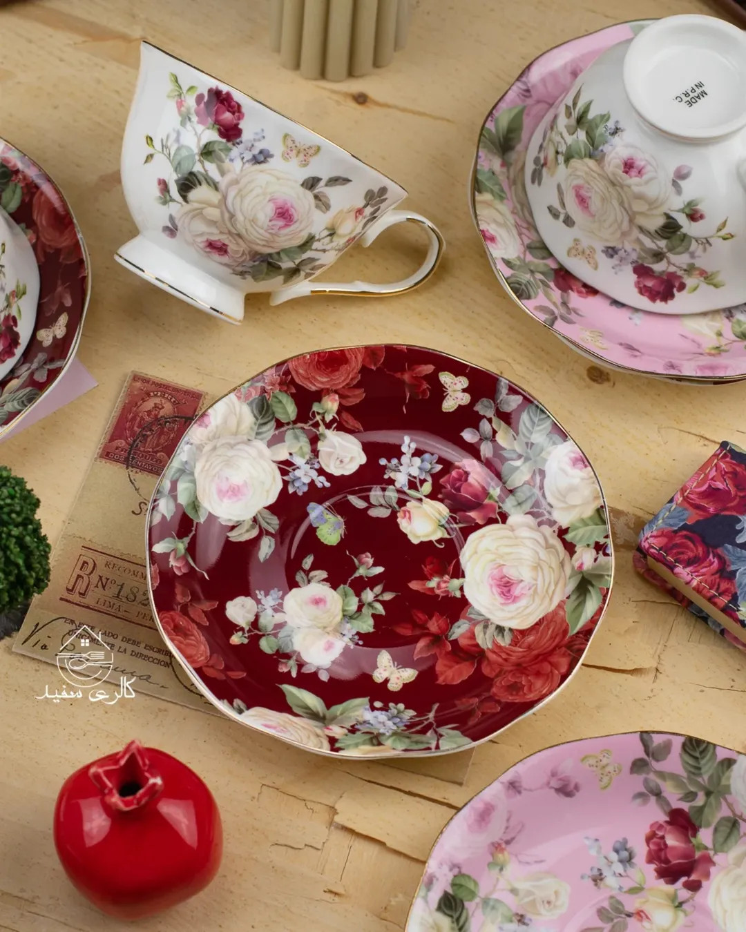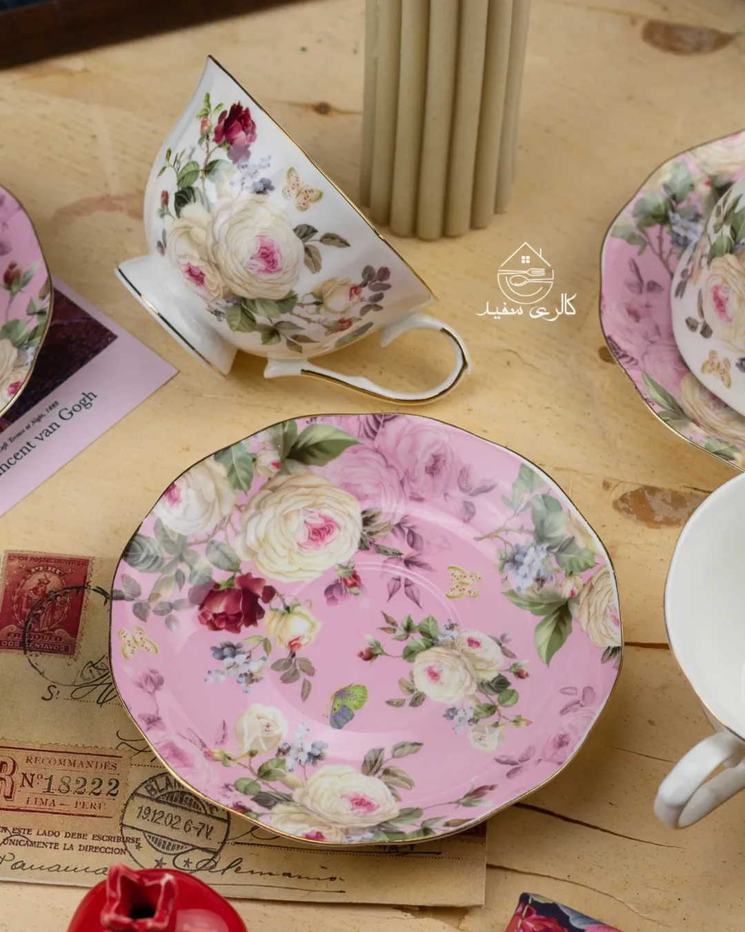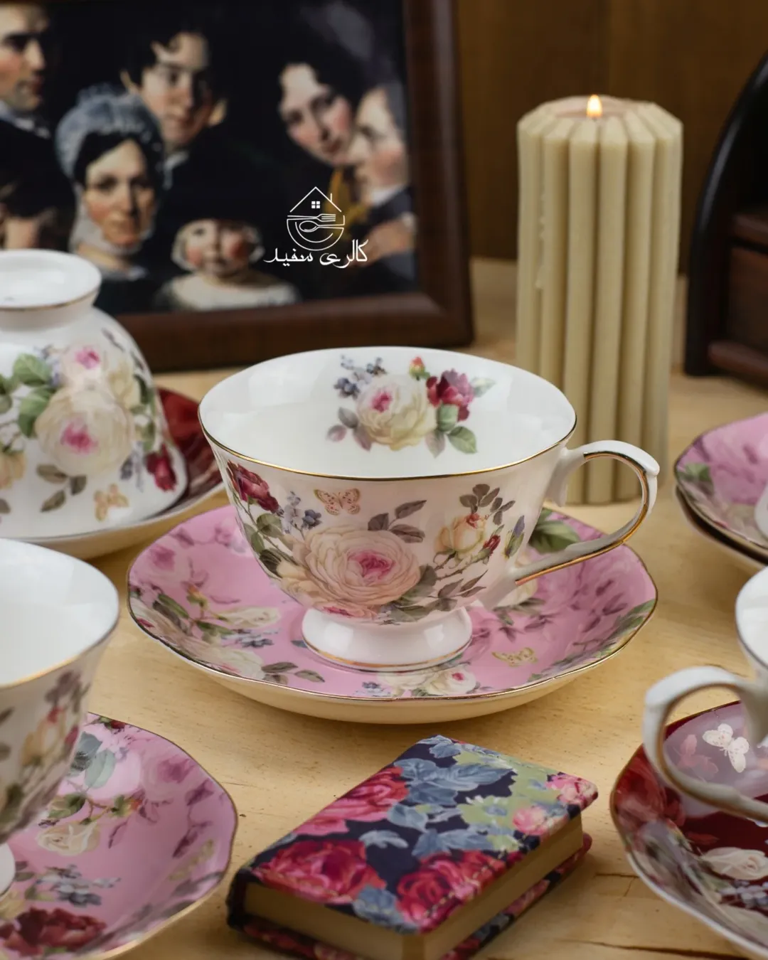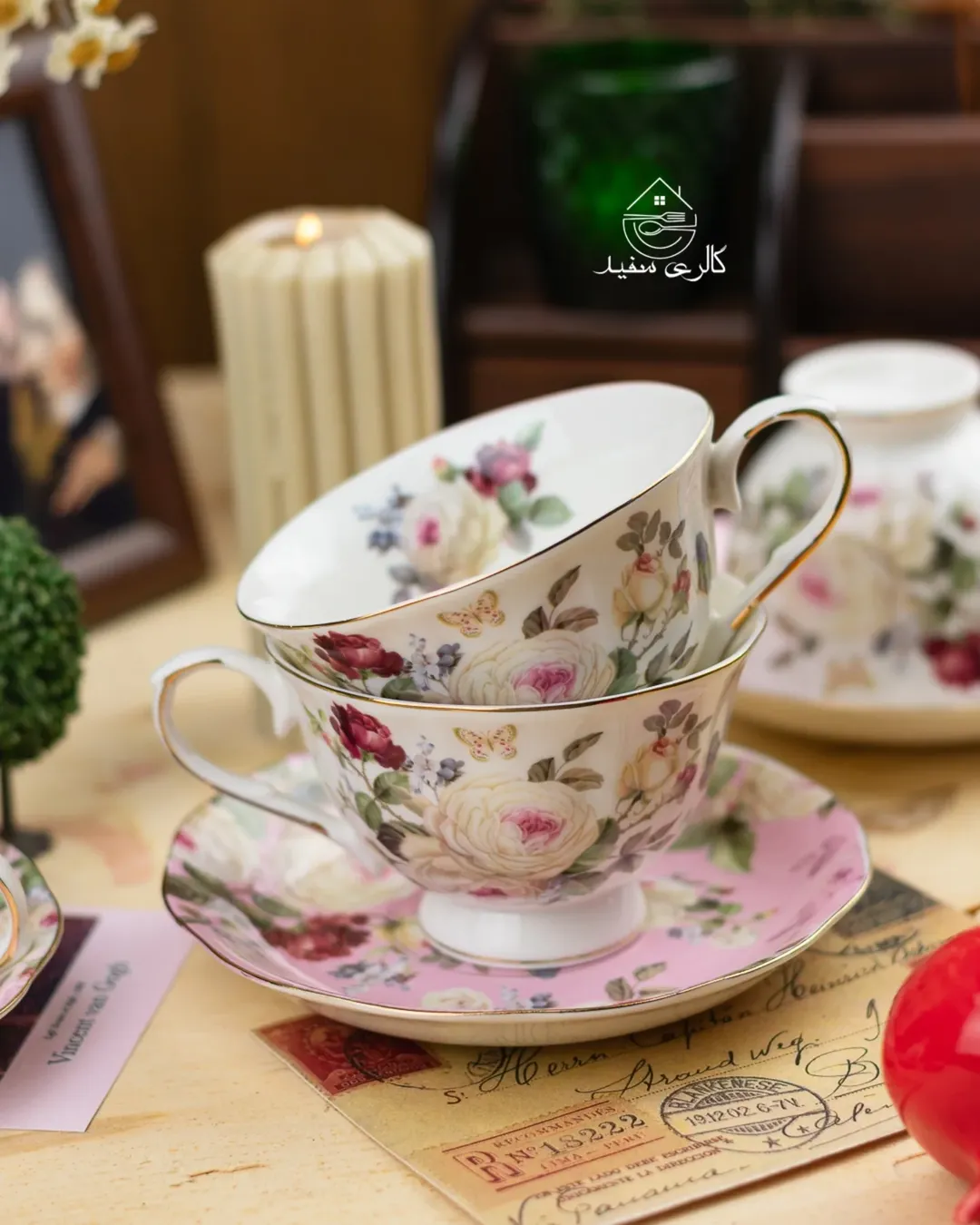 فنجان نعلبکی گلدار انگلیسی لبه و دسته طلایی جنس چینی مناسب چای و لته وارداتی ساخت چین کیفیت بسیار عالی دارای جعبه کادویی ست ۶عددی فروش به صورت تک و ست ۶عددی توجه: قیمت برای هر عدد فنجان و نعلبکی می باشد
