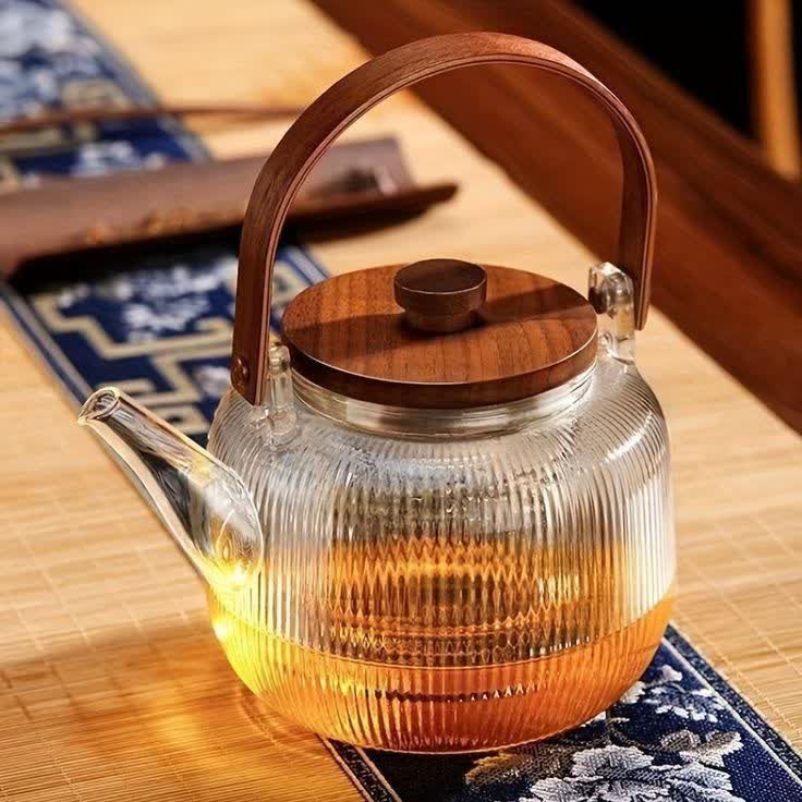 قوری شیاردار درب چوبی